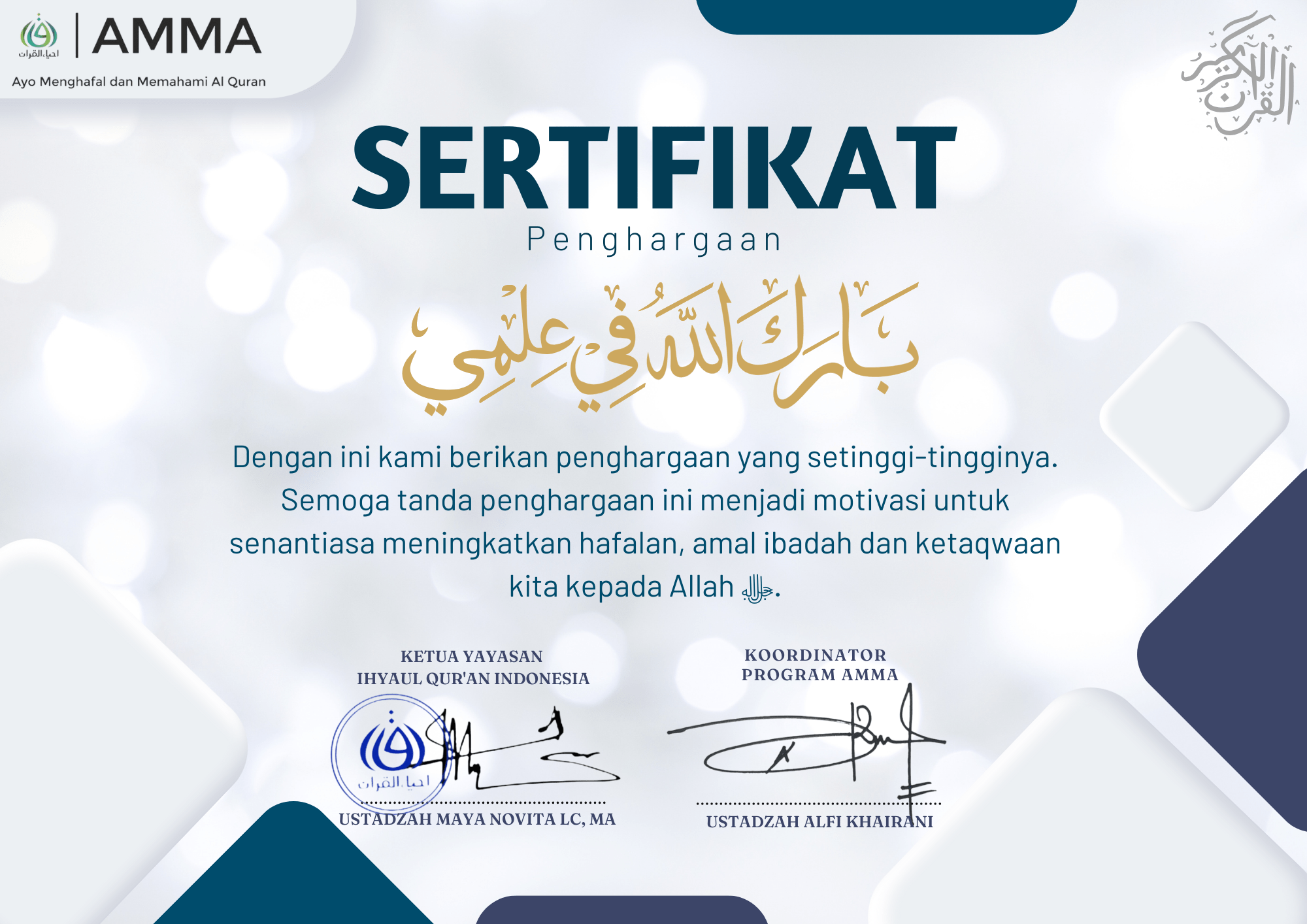 a.n: IHYAUL QURAN INDONESIA AMMA